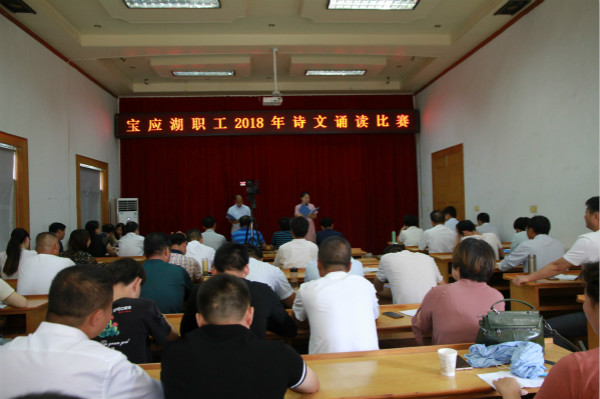 7月19日上午,宝应湖农场有限公司机关西会议室,不时传出阵阵掌声,宝应湖职工2018年诗文诵读比赛正在举行。
