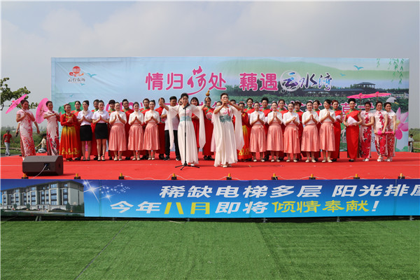 随后大家一起观看了古典舞《荷花颂》、葫芦丝二重奏《再唱山歌给党听》、武术表演《精忠报国》、经典古诗词咏唱《使至塞上》、歌曲对唱等自编自演的节目表演赢得了现场嘉宾及游客的阵阵掌声。演出现场还穿插了微信红包、幸运游客抽奖等互动环节,吸引了众多游客现场参与,为荷花节聚集了人气。