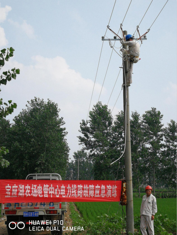 安全措施校对、工具准备、班前碰头会、处置线路故障……7月25日,宝应湖农场有限公司电力服务中心在二分场田头开展电力线路故障应急演练。