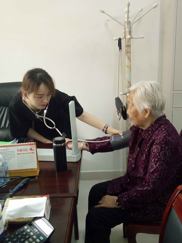 为此,居家养老服务站提出了“医疗+志愿服务”的工作理念,与江苏农垦肿瘤医院、志愿者服务队共同为老人构建起了完善的保障体系。为了便于老年人就医看病,江苏农垦肿瘤医院设立了老年人专用通道,保障第一时间提供医疗服务。此外,为有效保障老年人,尤其是独居、空巢老人的生活起居,志愿者服务队充当着“天使”角色,老人生活上有什么困难,只要拨打服务站的热线电话,场域内持养老护理证的志愿者便会上门提供服务。平时,经常来服务站活动的老人,随时都能够享受到服务站内的医疗人员提供的测量血压、血糖、保健按摩、康复训练和健康咨询等服务。