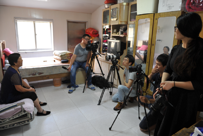 当天下午澎湃新闻采访组通过采访老人的大女儿唐宝南,五女儿唐秀兰两人,详细地向她们了解了老人的以前的工作经历和现在的生活起居以及健康长寿情况,计划明天用一天的时间,深入挖掘百岁老人的日常起居及家庭成员的生活情况。图为澎湃新闻在淮海农建四师历史陈列馆和张瑞瑞老人家中采访时的镜头。