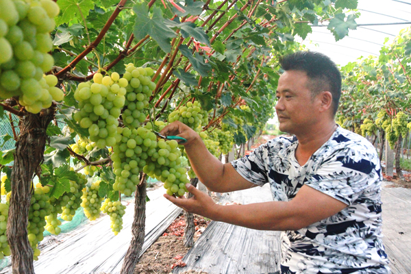 “种植业学问太大了,一投身进来就迷上了。” 10多年来摸着石头过河,由传统品种到高端品种,贾安俊在东台地区创下了多项记录:率先利用钢架大棚种植葡萄,率先引进高端品种,率先搞葡萄园开放采摘,率先实现整园葡萄网络销售。