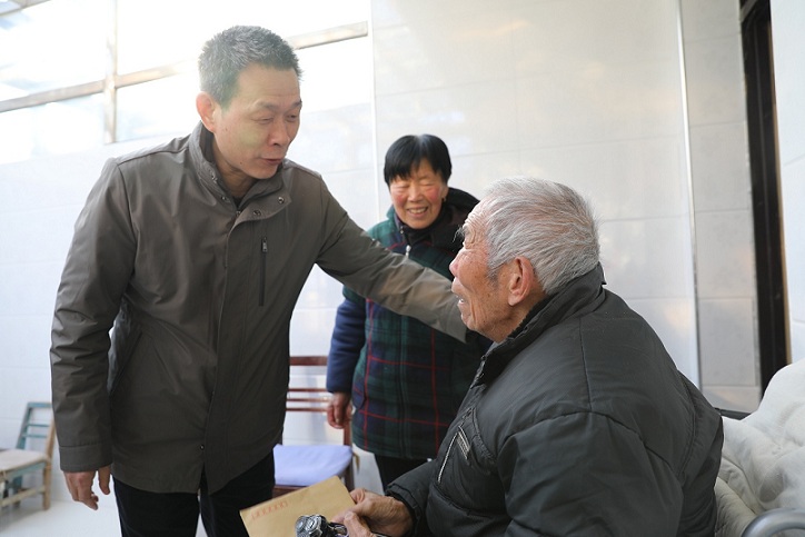 随后,姚准明一行来到困难职工朱同保家中,朱同保家庭因病致贫,姚准明在了解到朱同保的女婿多年如一日的照顾他,非常欣慰,鼓励他们要以乐观的心态面对这一切,树立生活信心,安心养病,战胜病魔,并送上慰问金和慰问品。