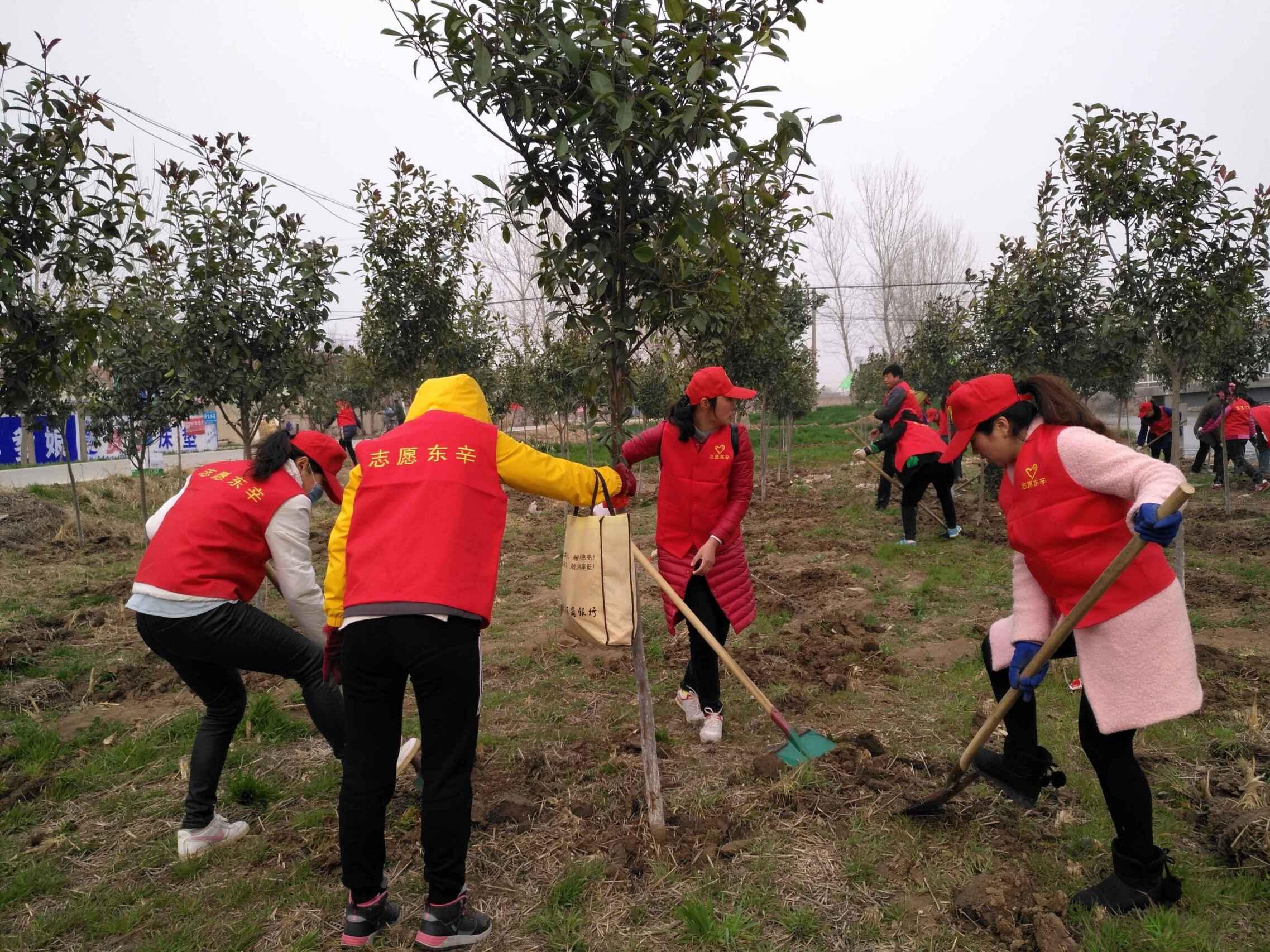 (图为东辛志愿者们参加义务植树活动)