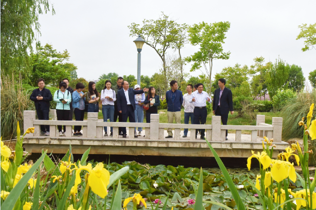 采访组一行首先来到淮海公园,在农场公司领导王灿明的介绍下,饶有兴趣地参观了镶嵌在公园中的军垦传统文化和全员廉政文化元素。公园中的“奋、奉、创”三个大字中蕴含的江苏农垦精神的含义,军垦传统文化浮雕墙、明山、桂莲桥背后的详实故事和包含在清风亭、静思亭、长廊、莲池、石碑中的廉政文化喻义等,打造了别具一格的军垦和廉政文化的主题公园,这个公园为职工居民提供了集休闲、娱乐、健身、教育于一体的大型公共活动空间,让职工居民在耳闻目睹中,增强军垦传统文化和全员廉政文化的获得感、自豪感。采访组一行对淮海利用公园平台,打造军垦文化和廉政文化的特色做法给予充分肯定,特别是这些平台设施背后的军垦和廉政文化故事更让人值得称颂。