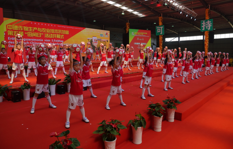 演出结束后,与会领导和嘉宾共同观摩了中德示范园田间先进农机具作业展示。