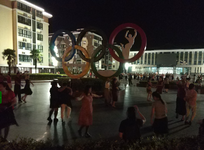 9月4日夜晚,在淮海音乐喷泉文化广场里,有近200名职工居民在周边和音乐喷泉灯光的映衬下,在两个相邻的舞蹈池中翩翩起舞。因为职工休闲体育运动广场进行升级改造,所以原先在体育广场上跳交谊舞的爱好者们也来到了奥林匹克五环下进行临时场地的跳舞。虽然不同的音乐、不同的舞姿,但在他们两支舞队的协同下,不仅相安无事,而且还跳出了不同的韵味,今晚,这里也成了农场有限公司小城镇中心地带一道最亮丽的风景。