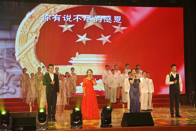 临近尾声,由滨淮农场70名青年员工带来的大合唱《江苏农垦之歌》与《我和我的祖国》,唱出了江苏农垦人对祖国母亲的崇高敬意和美好祝愿,为晚会画上了圆满句号。