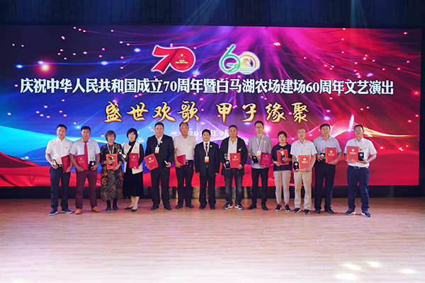 为庆祝中华人民共和国成立70周年暨白马湖农场建场60周年,9月23日下午,白马湖农场公司成功举行了“盛世欢歌 甲子缘聚”文艺演出,以一场视听盛宴和文化大餐,让广大干群共同分享国庆场庆的豪迈和喜悦、共同见证伟大祖国及农场发展壮大的荣光和辉煌、共同展示新时代农场和农场人的风范和风采。