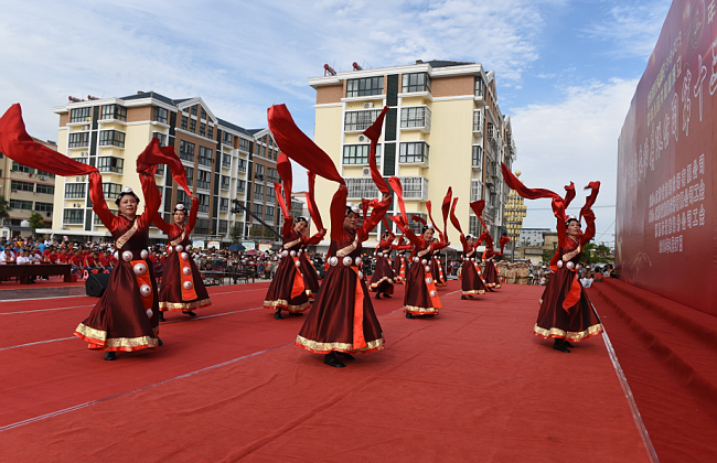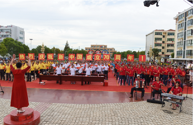 热烈庆祝中华人民共和国成立70周年和江苏省淮海农场有限公司第十三届广场文化节活动的成功举办,掀起了农场职工同唱爱国歌的热潮,也让广大职工居民在视听中,享受着淮海高质量发展带来的文化盛宴。图为广场文化节部分节目场景。