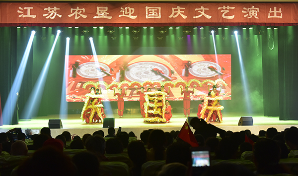 为组织好本次演出,各相关单位围绕主题,精心准备并编排了16个形式多样、内容丰富的节目,为现场的观众带来了一场视听盛典和节日礼包。演出在白马湖代表队喜庆的扇子舞《开门红》中拉开帷幕,复兴圩代表队紧接着献演了广场舞《舞动中国》,宝应湖代表队带来了舞蹈《点赞新时代》,三河代表队的徐蕊献唱了经典歌曲《映山红》,古典舞《采薇》诗意地传递了中华民族伟承至今的家园之思和家国情怀,白马湖代表队接着又为大家献上了腰鼓舞串烧《红色娘子军》和《没有共产党就没有新中国》,激发了大家对红色传统的追忆和追巡,特邀佳宾周银贵为大家献上了真情满满的葫芦丝演奏《情深意长》,白马湖代表队为大家献上了寄托农垦人对丰产丰收和美好生活向往的舞蹈《幸福生活万年长》,宝应湖代表队的新一代大学生们为大家带来了原创的朗诵《幸福是奋斗出来的》,白马湖代表队接着为大家带来了充满青春活力的现代流行舞《中国美草原美》,三河代表队跟着又献上了男声独唱《中国龙》,原创节目、摇滚快板《白马湖畔一颗星》唱出了时代的变迁和进步、道出了农垦人的自信和豪迈。演出最后,宝应湖代表队的舞蹈《红红火火大中华》,三河代表队的舞蹈《同唱祖国好》,复兴圩代表队的歌伴舞《和谐中国》,白马湖代表队的大合唱《江苏农垦之歌》与《歌唱祖国》,共同将本次活动迎国庆的主题和氛围不断推向了高潮,实现了江苏农垦迎国庆文艺演出的完美收官。