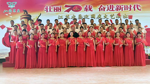 动听的歌儿献给党、最美的舞姿颂祖国。9月28日下午,白马湖农场有限公司职工会堂流光溢彩、欢声阵阵,洋溢着节日的喜庆气氛,由集团公司党委主办的“壮丽七十载、奋进新时代”江苏农垦迎国庆文艺演出在这里成功举行并完美收官。
