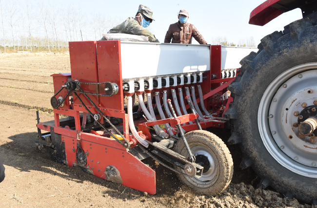 “播种深度全保持在1.5厘米上下,加上土壤墒情较足,这块田很快就会出苗。”在现场淮海农业技术服务中心主任王建武在检查后说,“用这种机械播种,播深完全一致,想播多深就全部在一个深度上。”