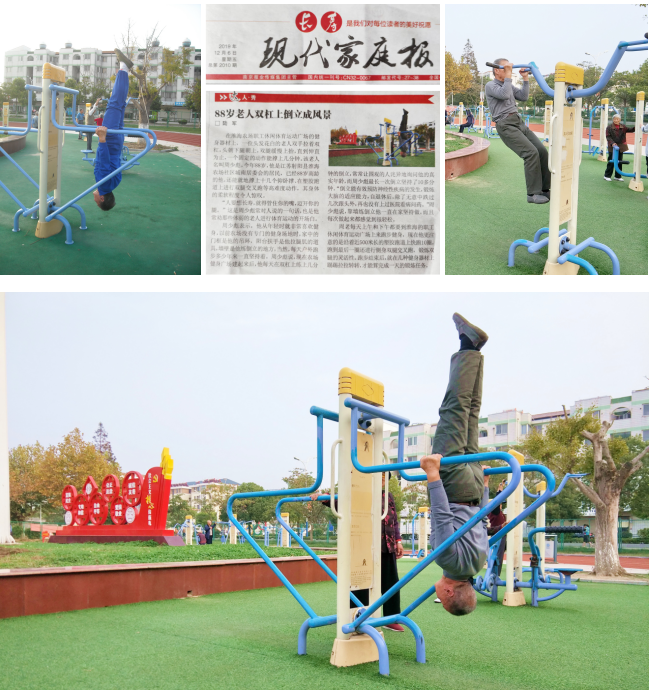 在第2020期出版的《现代家庭报》的达人秀上,刊登了淮海农场有限公司一位88岁老人进行健身的图文新闻,引起了人们的广泛兴趣。文章内容如下: