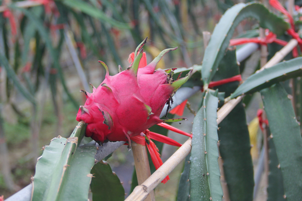 初冬时节,走进�港农场有机农庄的火龙果园仍然温暖如春,经过三年多的试验摸索,“南果北种” 的红心火龙果结果期成功延长到12月份。成熟的生产技术,不仅让果园的经济效益得到大幅提升,也为明年火龙果扦插育苗、推广种植打下坚实基础。