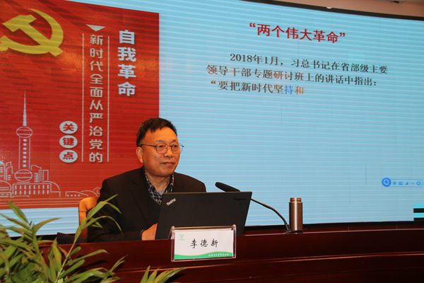 期间,市宣讲团成员、市委党校副校长李德新从十九届四中全会的基本情况和重大意义、《决定》的总体要求和重点任务、认真宣传贯彻落实四中全会精神三个方面全面系统地对十九届四中全会精神进行了深刻解读。重点阐述了在错综复杂的国内外形势之下所取得的一系列新的伟大成就,以及四中全会关于一个重要判断、一个重要结论、一份重要文件的主要成果。