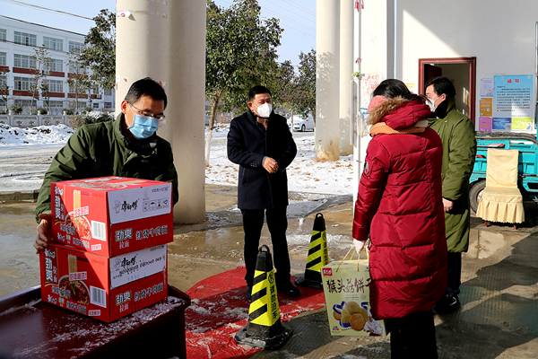 纷纷扬扬的雪花飘洒在岗埠大地,最美的不是天地一色的雪景,而是拼搏在疫情防控一线的身影。2月16日一大早,有一群人,他们却来不及欣赏这人间美景,他们有的是党员,有的是志愿者,还有退休党员、环卫工等人, 7点钟他们便匆匆奔赴各自的岗位,开始了又一天的疫情防控工作,他们是风雪中岗埠最美的风景。领导没有忘记他们,岗埠人没有忘记他们。好多职工群众自发为他们送去了食品、口罩……领导对他们坚守一线的精神给予高度评价!为他们送去饼干大碗面……对他们表示感谢!