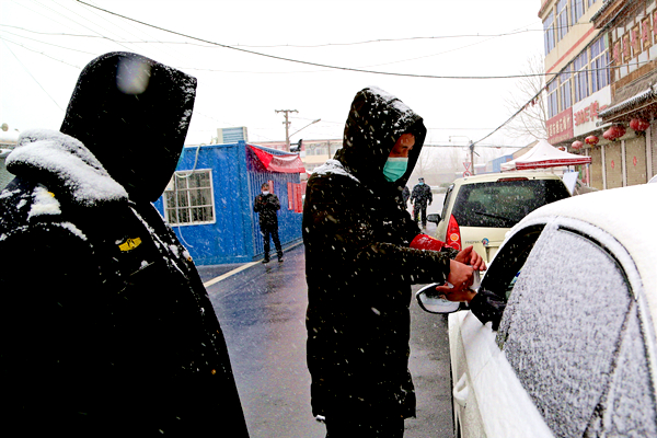 无论风有多大,雪有多大,岗埠党员志愿者们依旧坚守在各个防控岗位上!