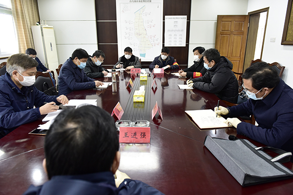2月25日下午,淮安区委书记张笑一行到白马湖检查新冠肺炎疫情防控工作并调研指导统筹做好疫情防控和经济社会发展工作,集团公司与淮安区工作组相关领导出席检查时召开的会议,淮安区政府副区长彭凯主持会议。