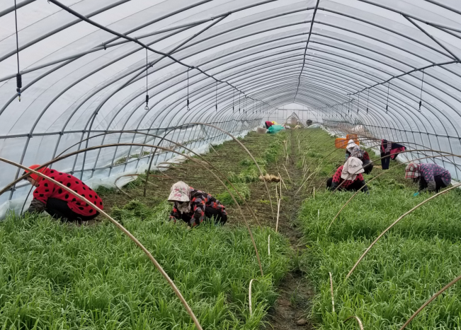 今年春节,为了保证节日市场蔬菜的供应,淮海高效园区想方设法动员广大职工群众戴着防护用品走出家门,自年初四就复工开始进入大棚割运韭菜、青菜、大蒜等供应周边市场,维护市场供给,并在疫情防范高峰期,还组织精包装的菜品送至机关社区大院,方便职工居民选购……