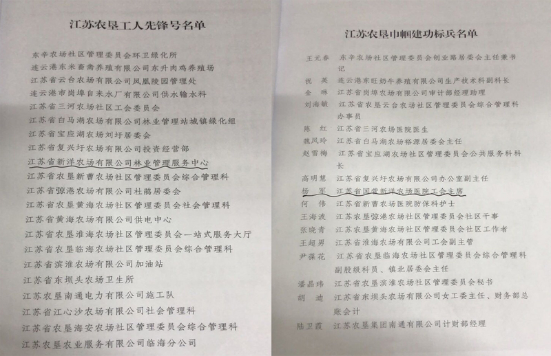 日前,集团公司下发关于命名江苏农垦巾帼建功先进集体(个人)的决定。新洋农场有限公司计划财务部被授予“江苏农垦巾帼建功标兵岗”荣誉称号,江苏农垦肿瘤医院工会主席杨军被授予“江苏农垦巾帼建功标兵”称号。
