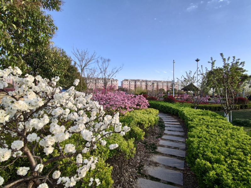 连日来,随着疫情消散,气温回升,淮海公园内被鲜艳的花卉、翠绿的苗木等装点一新,石楠的红叶、桃红色的桃花、乳白色的桃花、淡紫化的紫荆、淡黄色的垂柳、青绿的松柏、冬青的绿中泛黄等景色,辅助于公园内的长廊、石山、小桥、亭台、河流等的点缀,让农场社区的职工居民每天置身于色彩斑斓的花海中,既享受着多彩春天的魅力,又体味到生态绿色淮海给大家带来的休闲气息。