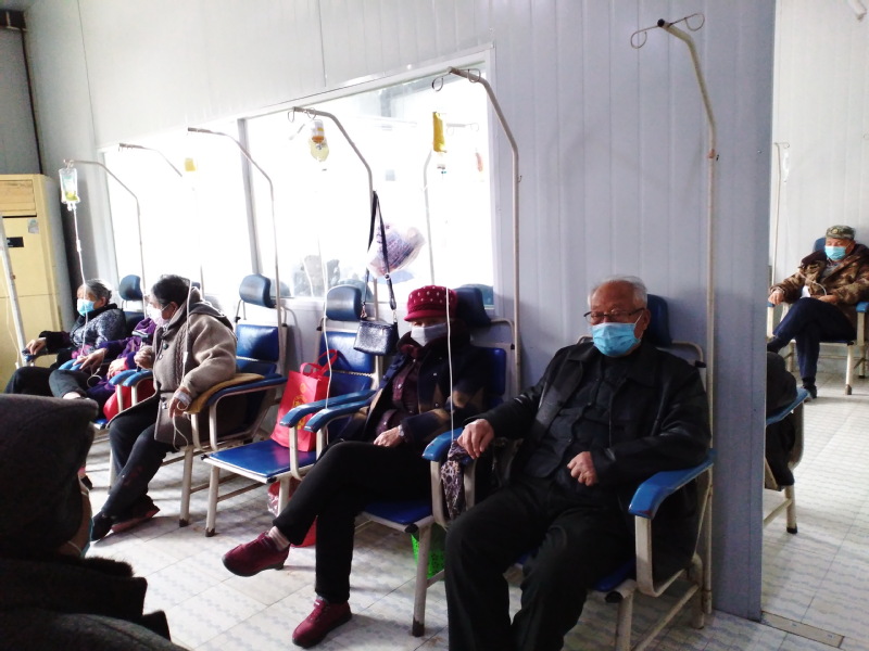 而当我们走入输液室中之时,发现虽然在这里输液挂水的老年居民较多,但无论是患者,还是陪护人的,大家都很自觉地佩戴着口罩,静静地坐在椅中挂水,也没有多少喧哗。即便大家说话时,也是在彼此听得见声音的声呗里,看得出大家都是自觉的人。