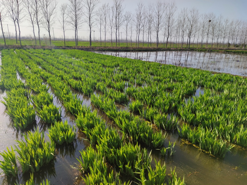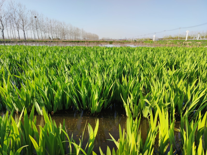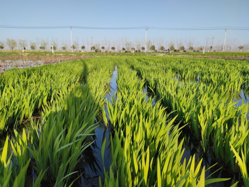 淮海爱莲苑除生长有大型荷花、睡莲等主体品种外,苑区内苗圃的优质鸢尾现已表现出强劲的生长优势,在枯败刚进入复苏的苑区中显得特别显眼,率先进入到了快速生长状态。