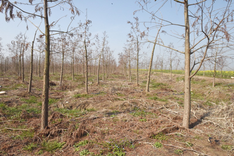 中山杉在我国是绿化造林中的优质品种,得到了国家的大力推广。2018年春季,淮海农场为了推进生态农场建设,在农场五分场社区与盐城染整园区的交界处,为防化工原料有可能带来的污染,农场与地方通过区域合作,规划建设了2400多米长、140多米宽的绿化隔离带,并从江苏靖江市苗木基地引进了5万多株优质中山杉苗木,以期把这里打造成一片500多亩高标准的绿色生态走廊和农场苗木建设的新景观。