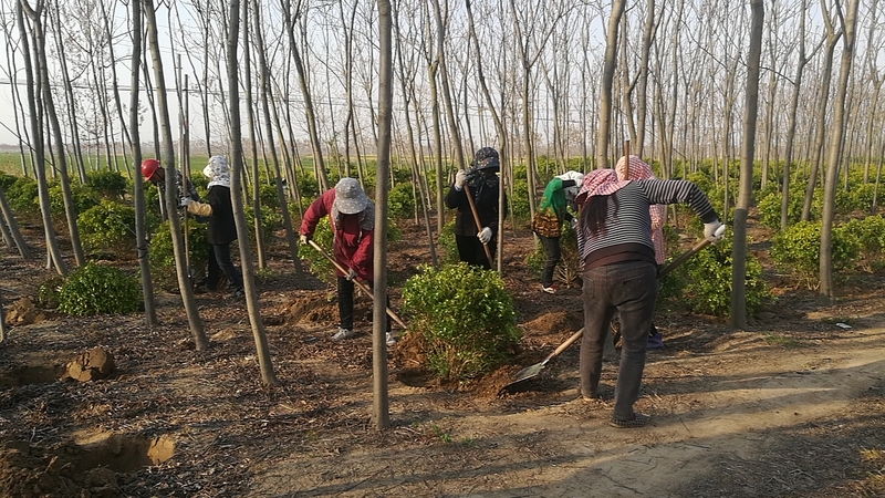 淮海农场有限公司资源开发管理中心苗木管理所,紧紧抓住当前适宜栽树的有利时机,每天组织20多名员工活跃在苗木基地上,一方面对在田苗木进行堆堤分栽和移苗补缺工作,保持堆堤苗木绿化的完整;另一方面对农场社区计划栽植的苗木进行对椄移栽,确保农场社区各单位行道树、小区、林地等绿化用苗,为生态淮海建设营造出了美丽的景观。图为该苗木管理所员工在林间进行堆堤瓜子杨的栽植工作。