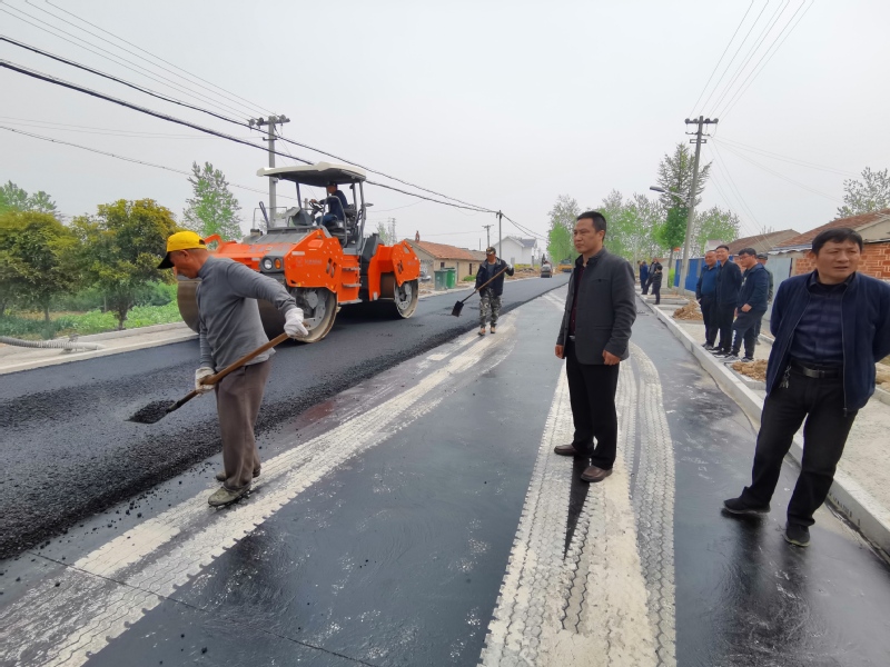 4月14日晚,宝应湖农场公司宝农路上,机声隆隆,灯光闪烁,工人们正挑灯夜战,浇筑沥青路面。