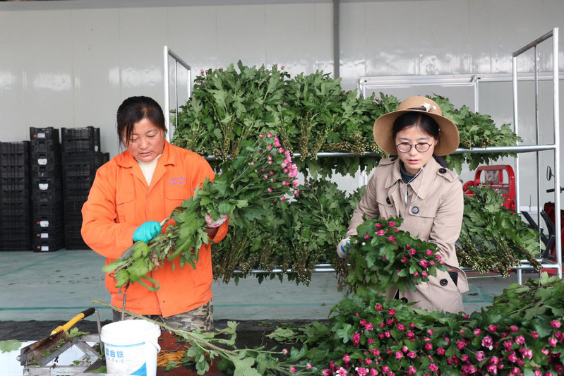 近日,岗埠富民农业科技园的冷链包装车间建成使用,为近期园区多头彩菊大批量裁切保存运输起到了良好作用。