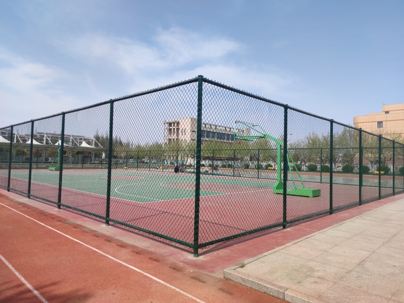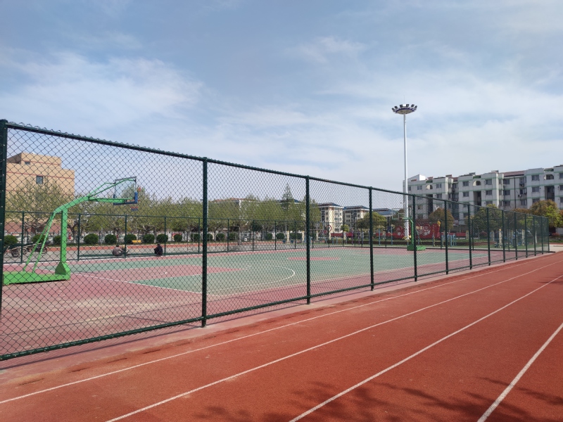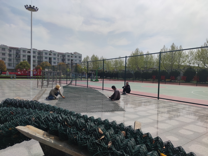 走进广场中的篮球场,漂亮的塑胶篮球场地又配上了3米高的绿格防护栏,三名安装人员已经安装了两面防护栏,正在对余下的防护栏进行施工。