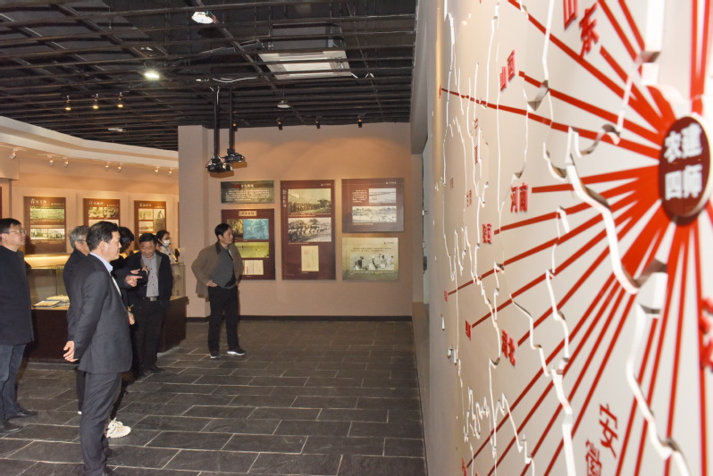 顾振华等一行先后来到了农建四师暨淮海农场历史陈列馆、苏垦米业集团淮海有限公司等地参观,通过听取陈列馆讲解员和陪同领导及相关单位领导的情况介绍,让台侨联的政协委员们对淮海的军垦传统文化历史和农场公司经济社会发展表示积极肯定,一致认为近年来淮海以稳中求进,又好又快发展为总基调,以提高经济发展质量和效益为中心,使经济社会发展取得了显著成效,成绩值得肯定。委员们纷纷表示在今年新型冠状肺炎感染的疫情过后组织此次调研活动,不仅直观了解了县域内农场的经济社会发展情况,更是要立足射阳,充分发挥政协委员的优势,认真履行职能积极建言献策,提出高质量、针对性强的意见建议,为推进射阳县域经济社会全面协调发展作出贡献。图为政协台侨联一行在淮海陈列馆内参观时的镜头。