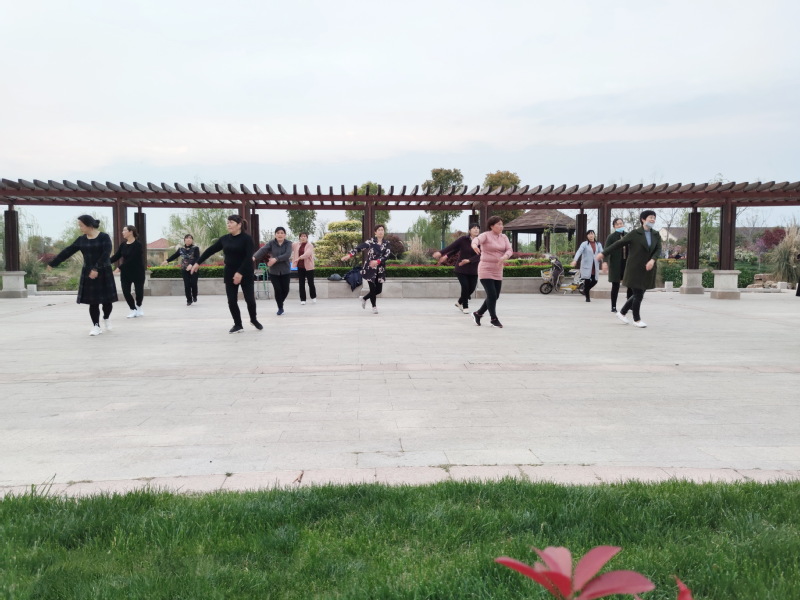 居住在农场小城镇中的职工居民是幸福的,他们在这美好的春光中健身跳舞、散步拍照,用以放飞疲惫的心情,享受着春光明媚给大家带来的好时光。图为淮海公园处处景。