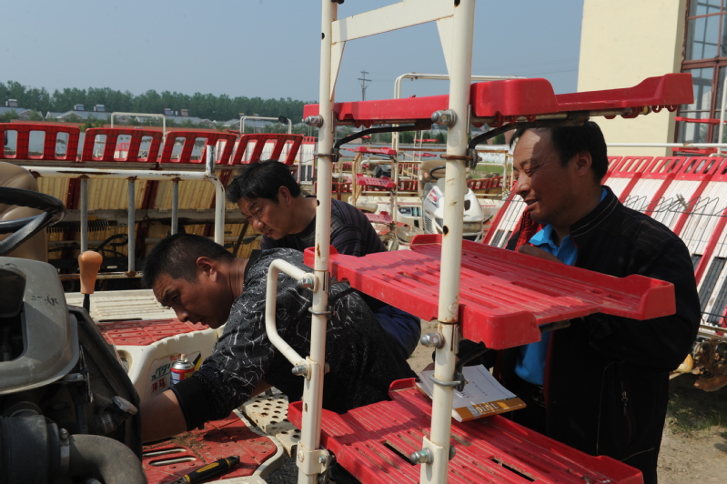 淮海针对农机操作安全隐患繁杂的特点,要求各农机站要把好工程农机规范管理的源头关,对农机从业人员的安全培训、安全警示标语的宣传、“三证一照”的获得、农机及其机具的安全检修、农机运作的技术状态、各类隐患的防范管理、消防设施设备等涉及安全的内容进行科学论证,确保各农机手和从业人员都能从思想上认识到安全生产责任重大这个意识,强化安全风险分级分类管控,特别是在进入农忙之前,一定要有安全生产管理预案,建立安全风险和事故隐患数据库,实行表单化消单管理。同时还要推进安全生产标准化机库建设,强化农机及其机具现场标准化管理,确保农机及其机具在田间作业、场头操作、道路运输、机库检修保养等各类作业现场、作业流程安全标准化建设。并借助安全生产大检查和安全隐患排查中,对所有隐患和问题实行表单销单整改和闭环管理,做到对那些违反安全管理必罚、不配合落实整改必罚、限期未整改到位必罚,以倒逼部分单位或是从业人员对安全隐患进行彻底整改到位。图为农机安全固定宣传标语和农机人员在检修时的镜头。