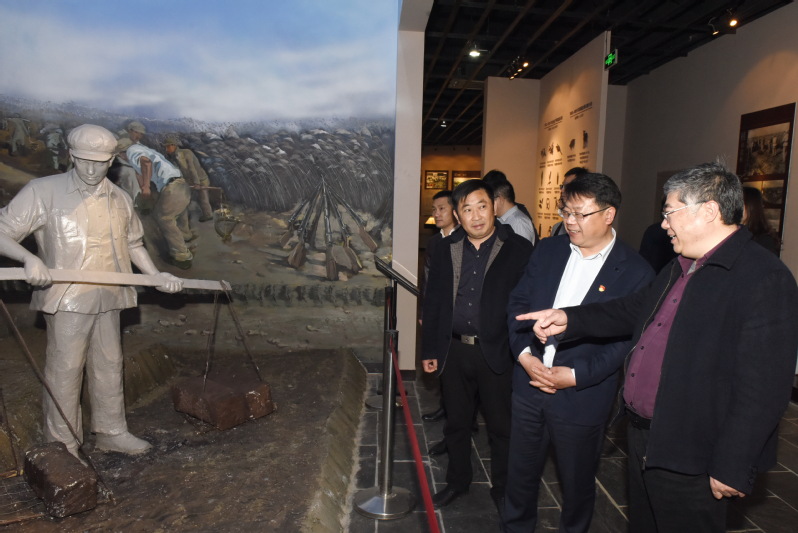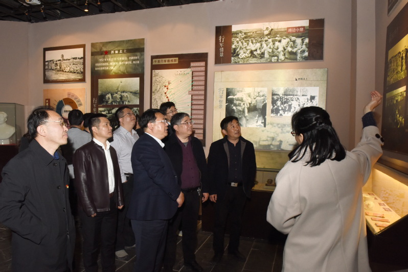 齐华一行在农建四师暨淮海农场历史陈列馆中,通过随同领导的介绍、陈列馆讲解员的解说,让研究室的党员干部来到军垦文化的发源地淮海农场的廉政文化教育基地,接受到了深刻的军垦传统文化和廉政文化教育,通过军垦将士们在农场建设的三年时期的历史,直观、形象、生动地了解了他们为了理想、信念和对美好幸福生活的向往,在这块贫瘠的土地上,建设成了现代化的国营农场的历史。让党员干部们通过实境课堂的观摩教育,进一步加强党风党纪教育,增强党员、领导干部廉洁自律和遵规守纪意识,从而在单位上下营造出风清气正的政治生态环境。图为市委研究室党员干部一行在参观陈列馆时的部分镜头。