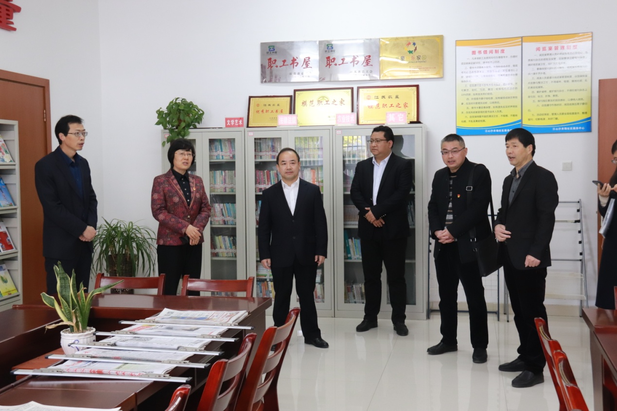 在世界读书日到来之际,4月23日,海门市总工会主席姜敏一行莅临江心沙农场检查指导工作并座谈,党委书记、董事长朱江胜,总经理、社区管委会主任薛忠,纪委书记严建文、工会副主席苏勇参加。