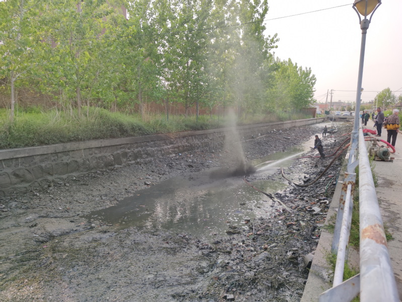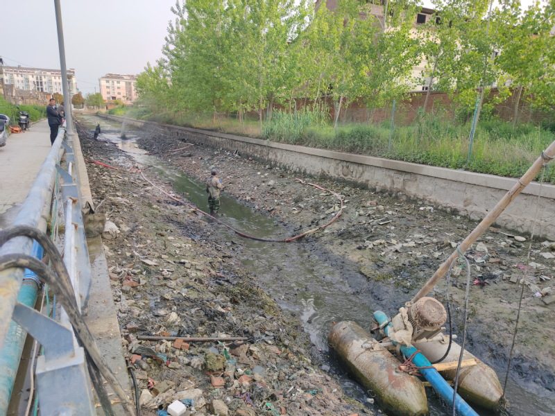 我们在现场看到,为了较好地保护两侧的水泥驳岸,农场公司规划建设部门在冲浆时,避免对两侧驳岸下的地基进行冲刷,并要求在冲浆后把沟河中的砖块泥土等硬物堆积到河道两边,形成较好的护坡,从而使水泥驳岸工程持续地为农场小城镇发挥出效益。图为农场公司组织的泥浆泵正对水下的淤泥杂物进行冲洗和远程运送。图为农场公司组织的泥浆泵正对水下的淤泥杂物进行冲洗和远程运送。