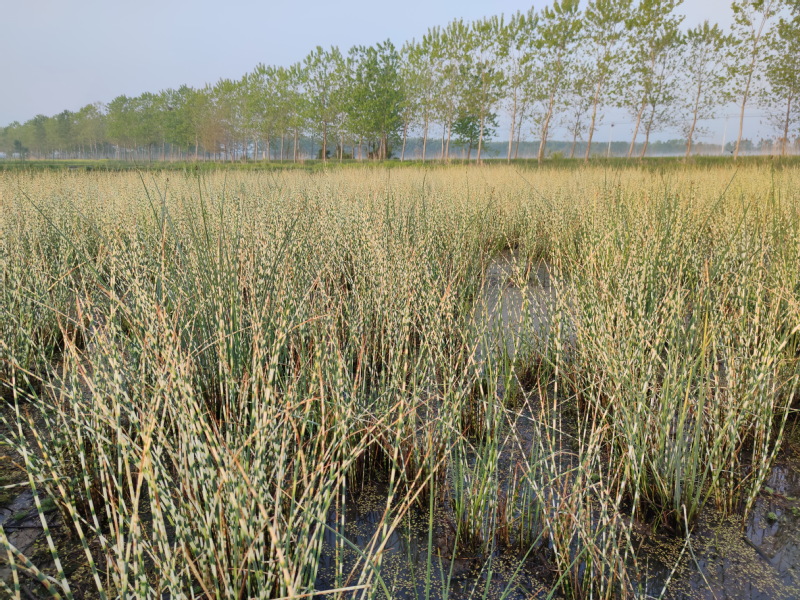 据田间的花农介绍,这种植物是水葱,为莎草科多年生宿根挺水植物,一般株高1-2米,茎杆高大通直,很像食用的大葱,但不能食用。杆呈圆柱形,中空。在自然界中常生长在沼泽地、沟渠、池畔、湖畔浅水中。因该植物的地上部分可入药,夏秋季采收,洗净、切段、晒干,具有利水消肿之功效。此外,水葱在水景园中主要做后景材料;其茎杆可作插花线条材料,也用作造纸或编织草席、草包材料。所以水葱无论是在水边池旁布置,还是作为后期药物及材料使用,都具有极大的利用和观赏价值。