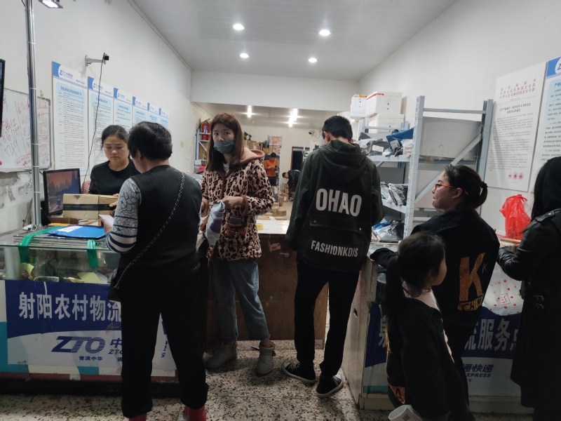 近年来电子商务飞速发展,也加推了各种物流业的发展,特别是随着销售环节的扁平化,一些商家产品的成本也大大降低了。这样农场的一些职工居民,哪怕是一个小小的物件也情愿网购,而不再费力费神地去商店淘去了。图为忙碌的农场全球快递服务店。