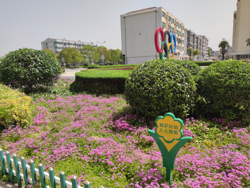 农场社区为深入开展环境卫生整治活动,从文明单位创建工作开始抓起,详细制定农场社区区域内的环境整洁活动计划,落实工作责任,确保环境卫生整治活动效果明显;同时农场社区充分利用宣传栏、广告牌、微信、倡议书、职工居民守则等多种宣传方式,加大对农场社区环境保护的宣传力度,深入开展相应的宣传教育活动,引导广大职工居民从家庭、从个人做起,自觉养成文明健康的生活习惯,为职工群众营造良好的工作、学习、生活环境。图为位于淮海农场社区文化广场绿化带中的文明标识牌及绿化场景。