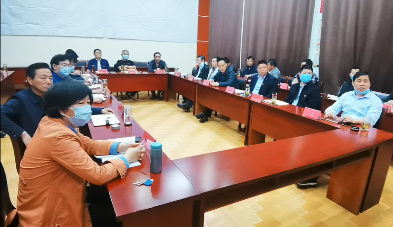 图为5月13日上午,党委中心组学习会上,与会者一起认真学习集团党委最近印发的“巡察监督重点清单”的主要内容