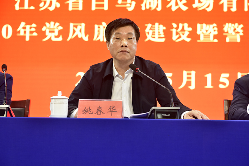 姚春华在会上发表了题为《守正固魂廉洁聚力 坚持不懈推动党风廉政和干部作风建设》的讲话,以讲党课的形式,从四个方面强调要坚定不移推动全面从严治党向纵深发展,坚持不懈推动党风廉政建设和干部队伍作风建设。一是提高政治站位、加强党性锻炼,握紧正风肃纪的“方向盘”。自觉锤炼党性,做到永葆忠诚不动摇;自觉牢记宗旨,做到执政为民不偏离;自觉尊崇制度,做到依规用权不含糊;自觉立德修身,做到清廉自守不懈怠。二是准确把握形势、提振信心勇气,常念反腐倡廉的“紧箍咒”。准确把握当前的反腐败新形势,精准分析农场公司当前存在的问题,增强“越是艰险越向前”的英雄气概和“狭路相逢勇者胜”的斗争精神以及持之以恒、毫不动摇抓全面从严治党的信心和勇气。三是自觉加强修养、提升能力素质,把住做人做事的“总开关”。树立正确的世界观、人生观、价值观,坚守正道、弘扬正气,坚持以信念、人格、实干立身,做到“气正”“心正”“身正”“行正”,真正做到只争朝夕、不负韶华。四是全面落实责任、主动担当作为,筑牢反腐倡廉的“防火墙”。做到一以贯之落实从严治党责任,一以贯之加强廉洁思想教育,一以贯之加强作风建设,一以贯之严格执纪问责。