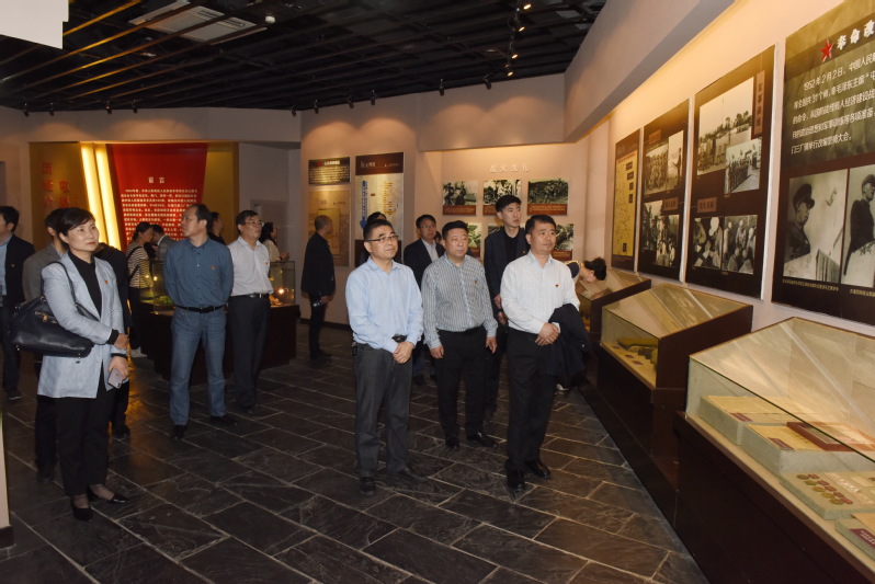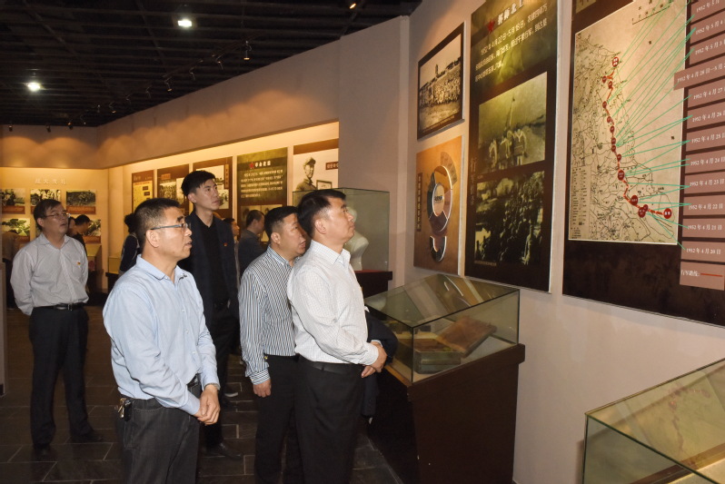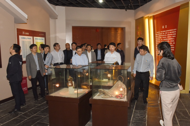 邢健康等一行在陈列馆讲解员的引领下,依次参观了农建四师纪念碑、毛泽东发布的屯垦戍边命令碑文、农建四师陈列馆等。在农建四师陈列馆中,那些有着年轮的劳动工具、生活用品、历史照片、视频资料和劳动场景雕像等,通过直观的形式纷纷展现在大家眼前,所有这些无不诉说着当年军垦战士们为了新中国建设的崇高理想和使命,义无反顾在来到黄海之滨的滩涂上,他们带着激情、带着梦想在这片土地上奉献智慧、挥洒汗水的青春故事,并创建了不朽的“艰苦奋斗、不怕困难、团结奋进、无私奉献”的淮海精神,铸就了“奉献青春献终身、献了终身献儿孙”的革命大无畏情怀。当年垦荒者们用艰苦奋斗和爱国奉献的精神深深感染了盐阜公路运输集团的党员干部们,他们表示艰苦奋斗的精神和为了崇高理想是共产党人不懈奋斗和前进的动力,这笔精神财富,一定要在我们党员干部中首先得到传承,倍加珍惜这来之不易的幸福时代,坚守入党初心,矢志为国奉献。