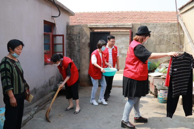 活动中,党员先锋队对辖区4户困难群众进行了走访慰问,深入了解困难群众的家庭生活状况和存在的具体困难,并送去米、油等生活用品及慰问金。党员志愿者看困难群众家中因身体不便造成家庭卫生环境较差,便顶着高温烈日动手帮助他们打扫卫生。大家分工合作,半天的时间将院子里无用的杂物清理出去,厨房垃圾油渍打扫干净,地面洒扫整洁,又将他们的生活用品摆放整齐,在和他们亲切的拉家常中,引导他们要养成文明健康的生活习惯。看着干净整洁的环境和党员志愿者满脸的汗水,困难群众连声表示感谢。