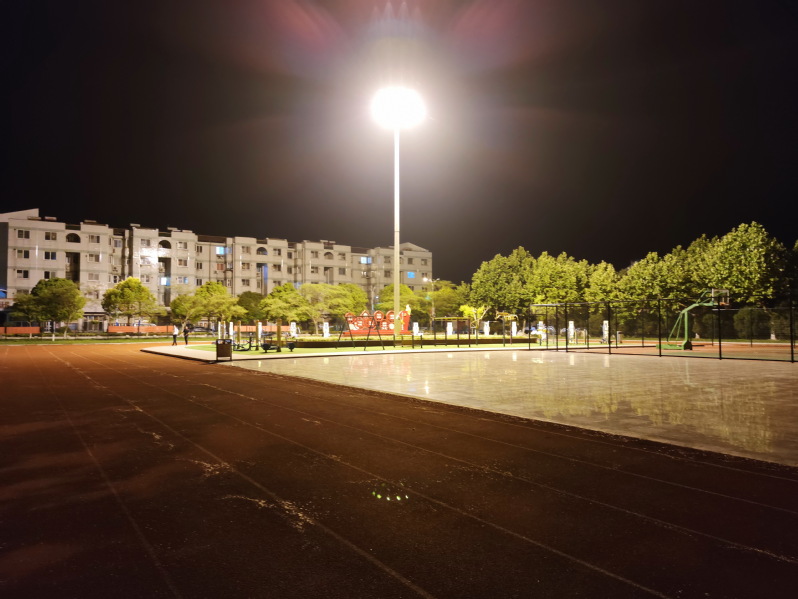 目前,淮海农场公司以健康体育文化为引领,落实全民健身国家战略、倡导文明健康生活方式、促进全民健身与全民健康深度融合,有力地促进了生态美丽新淮海建设。农场公司今年以来,除建成的三大广场外,还在城西居委会远离广场的空地上铺建了篮球场、羽毛球场等场所,今年下半年,将围绕神禾路水泥驳岸路边,建设封闭式的闭环塑胶跑道,这些民生和体育设施工程的建设,让农场职工居民又多了健康体育运动的一项新选择。图为静谧下的职工休闲体育运动广场夜色景观。