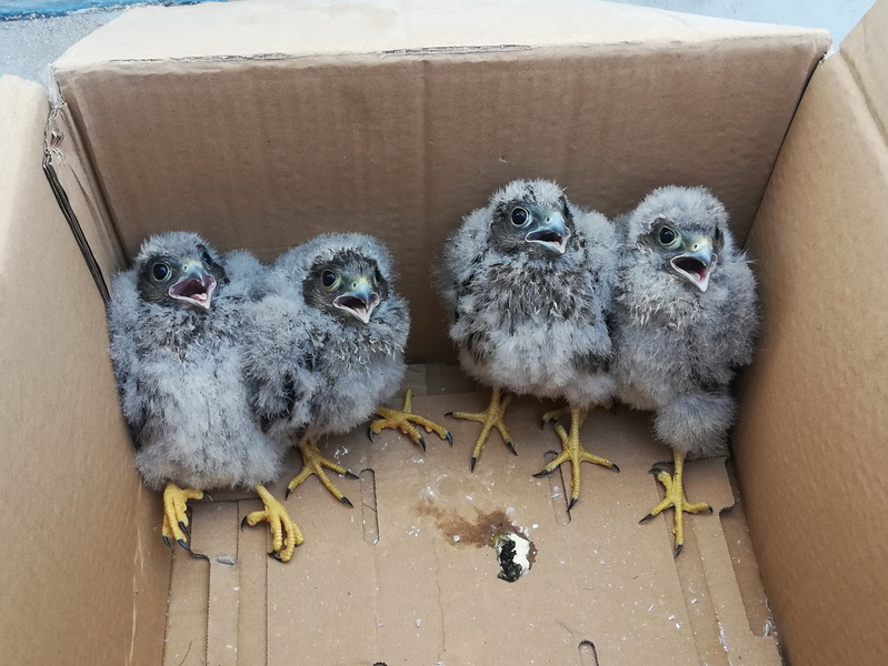 于是他们就将燕隼接走,将这4只雏鸟放到野生动物救护园接受专业饲喂,并待其能独立飞翔后,再选择合适的地点,将燕隼放归大自然。
