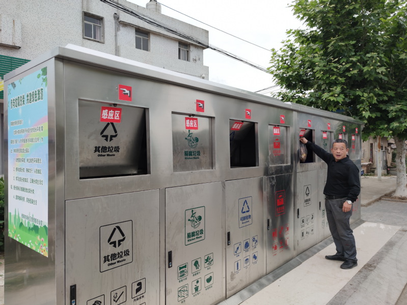 据观察,这座新颖的垃圾回收站是由两组合的4个回收箱组成,分别是有害垃圾、易腐垃圾、可回收物、其他垃圾组成,在每个投放口上方标注有感应区,投放口下方标注有投放垃圾的分类类型。这样,职工居民可以根据垃圾箱上的图片分类,日后引导广大职工居民养成了在家中分类包装垃圾、分类型投放垃圾的习惯,简单明了,易学会做。垃圾分类日前已经成为淮海职工居民爱护美丽淮海,讲究环境卫生的新时尚。