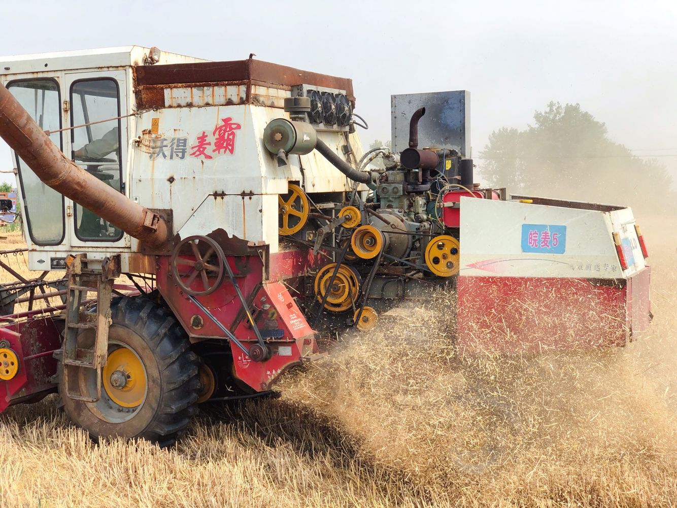 “三夏”生产,农业机械唱“主角”。6月1日,在洪湖生产区,大型收割机正在一眼望不到边的金色麦田里来回穿梭,伴随着收割机的轰鸣声,饱满的麦粒瀑布般倾泻进农用拖拉机的车斗里,处处一派繁忙景象。管理人员开心地说,尽管今年雨水偏少受到影响,但是管理及时到位,小麦长势良好,加之天气晴好,全部机器投入使用后,一周内所有小麦都可以收割完毕。